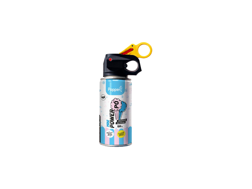 É um extintor de pó colorido compacto, potente e fácil de manusear